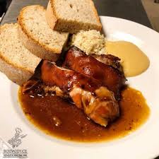 Vykostěné pečené kolínko, křen, hořčice, chléb